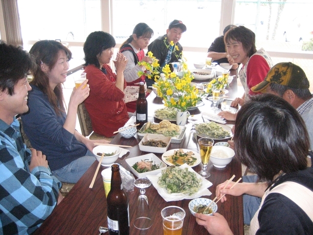 (中央)地元の神社清掃ボランティアの様子。このあとはバーベキューで楽しみます。